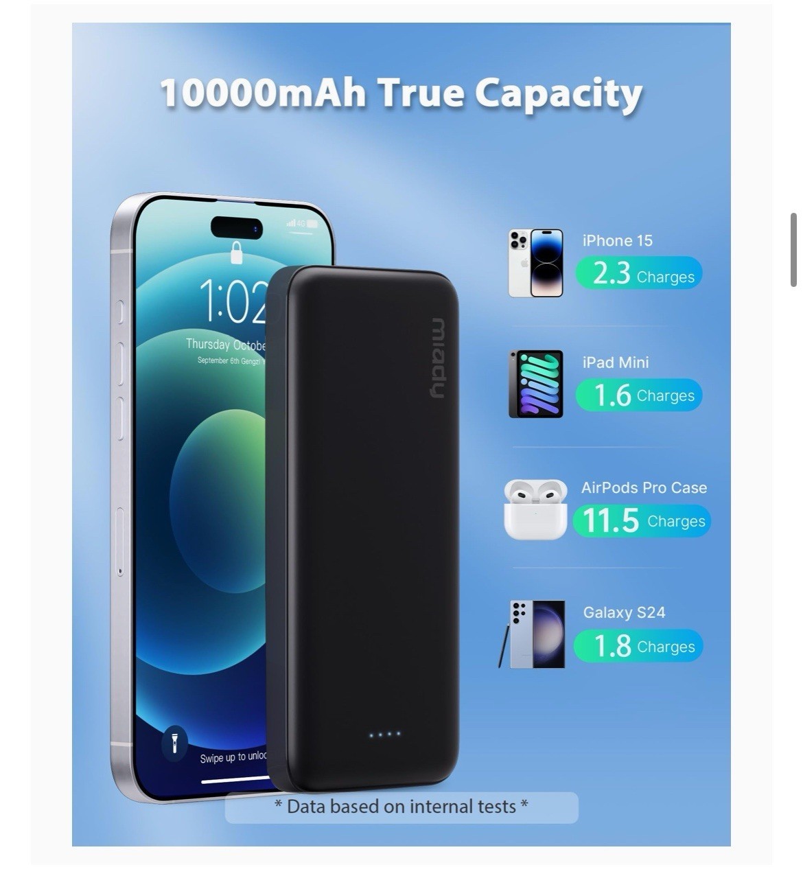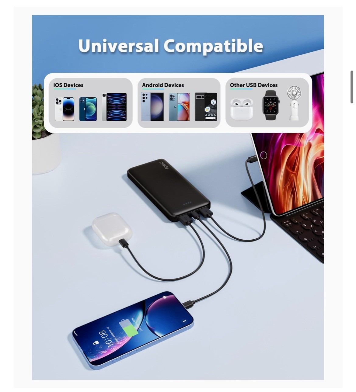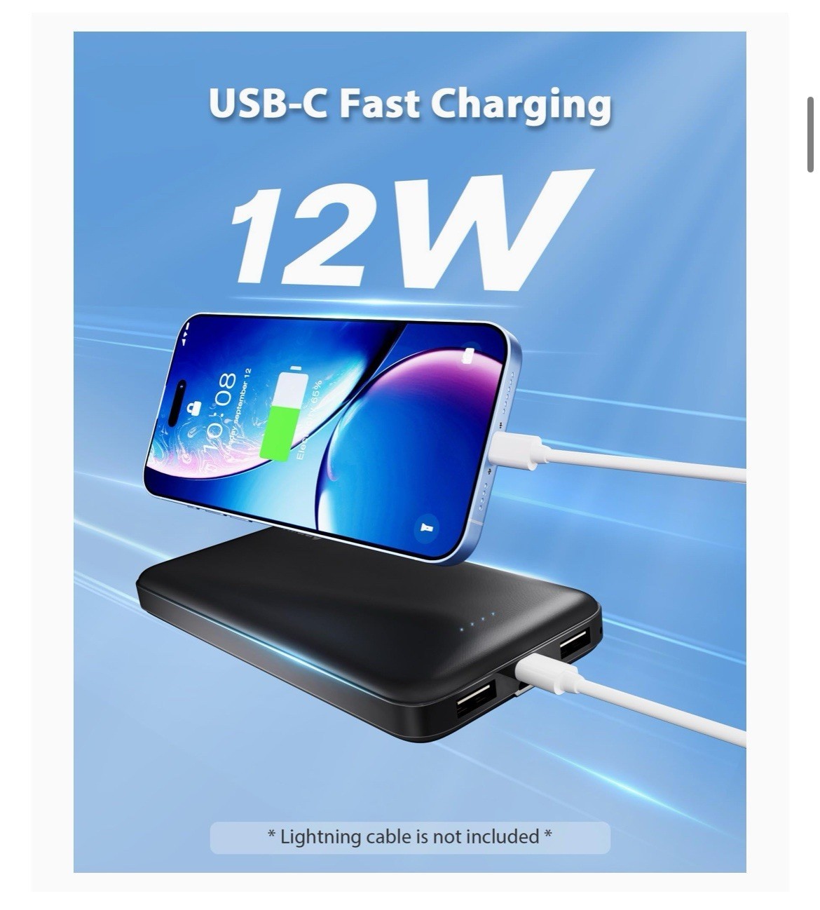 Power Bank Dual USB-C 2-Pack Charger 10000mAh Portable Backup For iPhone Samsung