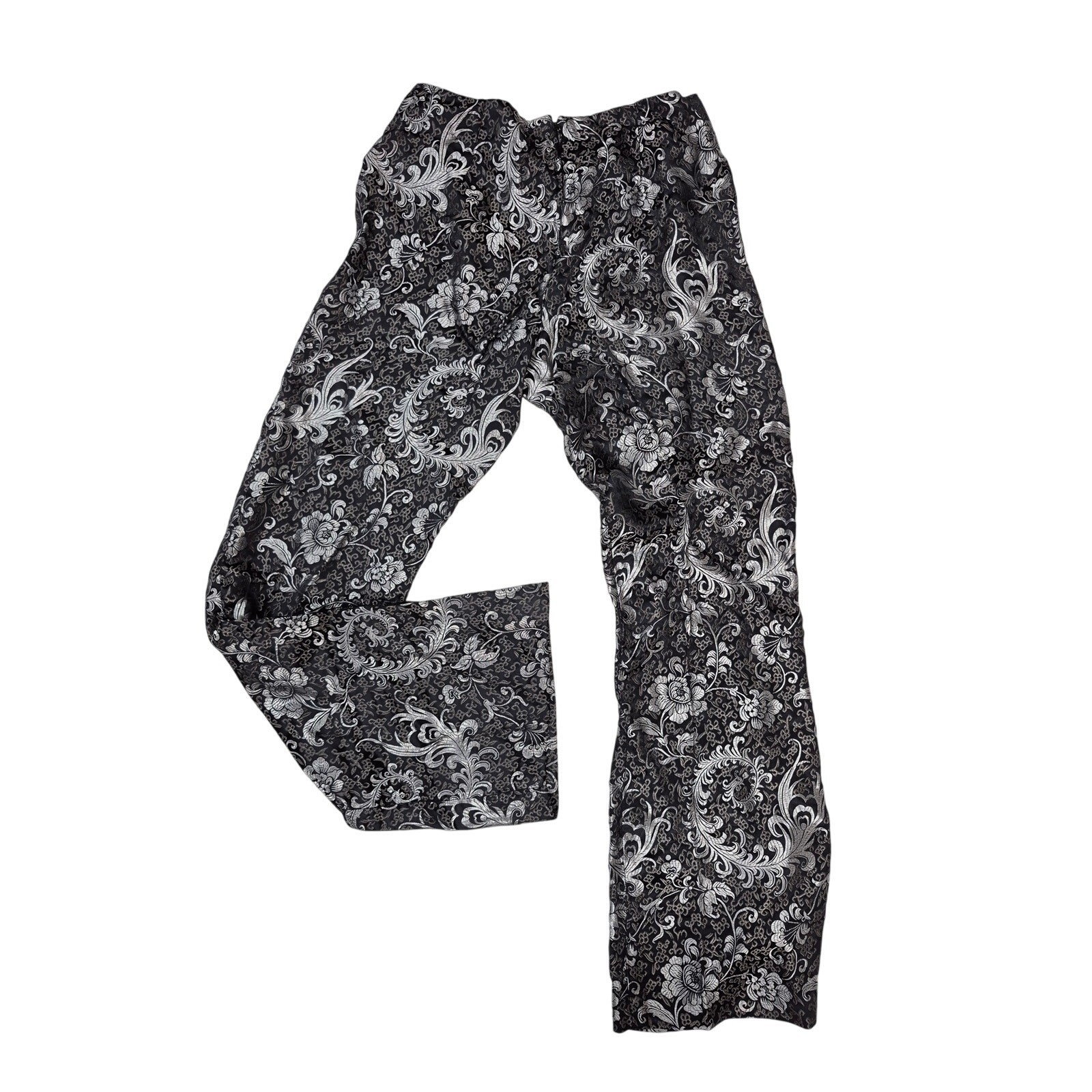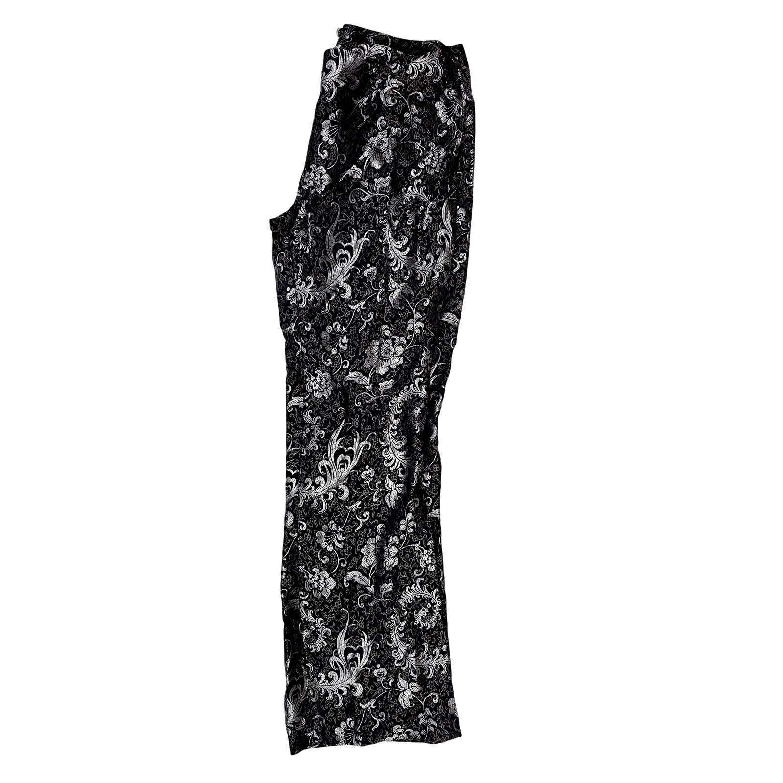 Vtg Willi Smith Pants Black Silver Damask Floral Boot Cut Zip Back Flat Front 8