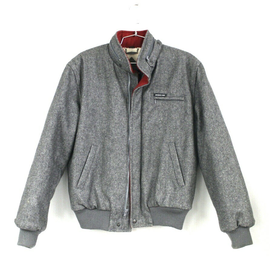 Vintage Members Only Gray Wool Blend Bomber Jacket Fleece Lined Mens 40R-in excellent condition, clean- there is a light whitish stain on the back as shown. The inside is really clean, seems like it was not worn much at all.