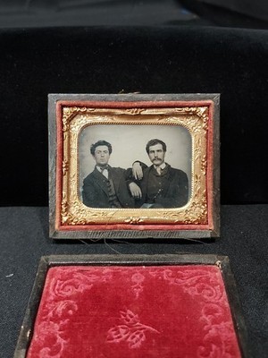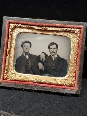 Antique 19th Century Ambrotype Photo, 2 Young Handsome Victorian Men, Mid 1800s