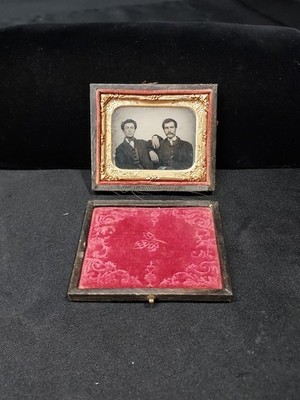 Antique 19th Century Ambrotype Photo, 2 Young Handsome Victorian Men, Mid 1800s . Condition is Used. Shipped with USPS Ground Advantage.