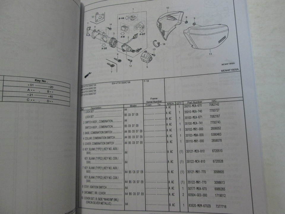 2003 2004 2005 2006 Honda CBR600RR Parti Catalogo Manuale Nuovo Libro