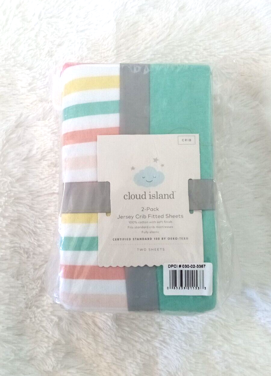 Introducing the Cloud Island 2pk Jersey Crib Fitted Sheets, perfect for your little one's nursery. These sheets come in a beautiful multicolor stripe/solid pattern and are made of soft and comfortable 100% cotton material. The fitted design ensures a snug fit for your crib mattress, while the unisex design makes it suitable for any gender.