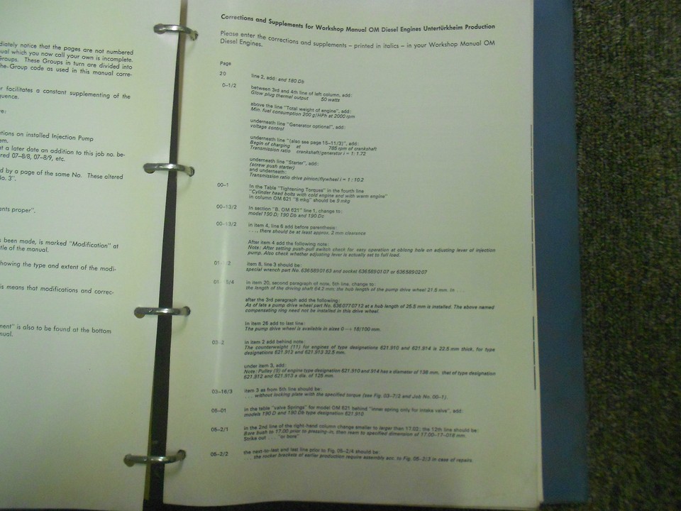 Diesel Engine Service Manual Mercedes 636 621 1960s 70 80 90s- show original ...