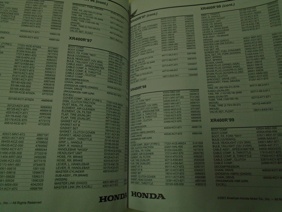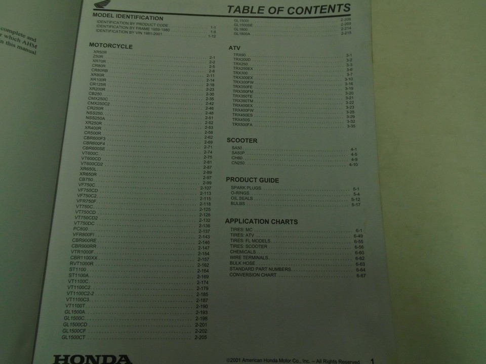 1997 2001 Honda Qrg Parts Quick Reference Guide Supplement Manual Used Book- ...