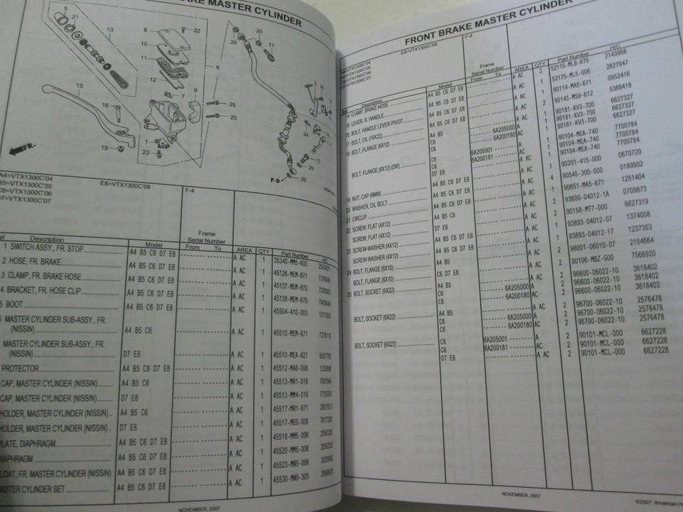 Parts Catalog Honda VTX1300C 2004 2005 2006 2007 2008 Manual Book New- show o...
