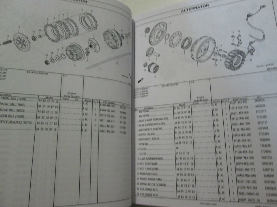 Nouveau, deuxieme impression 2004-2005-2006-2007-2008 Honda VTX1300C Manuel du catalogue des pieces d'usine Honda VTX1300C