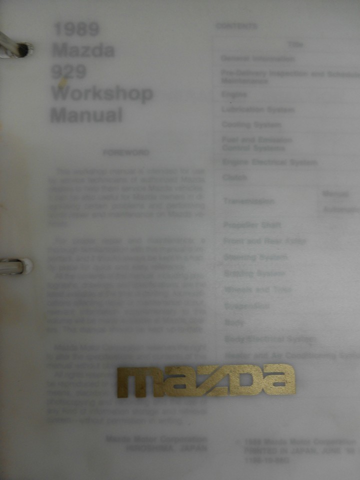 1989 Mazda 929 MANUEL DE REPARATION DE SERVICE