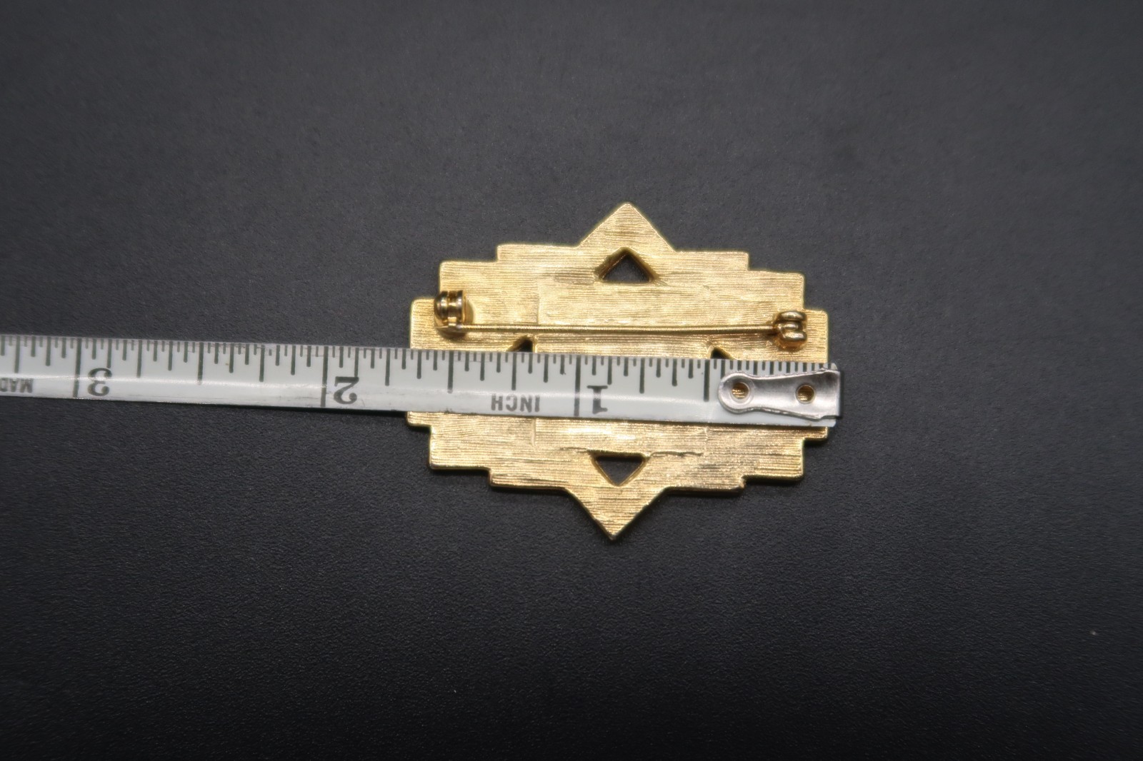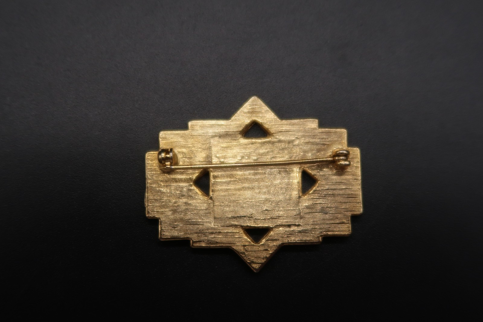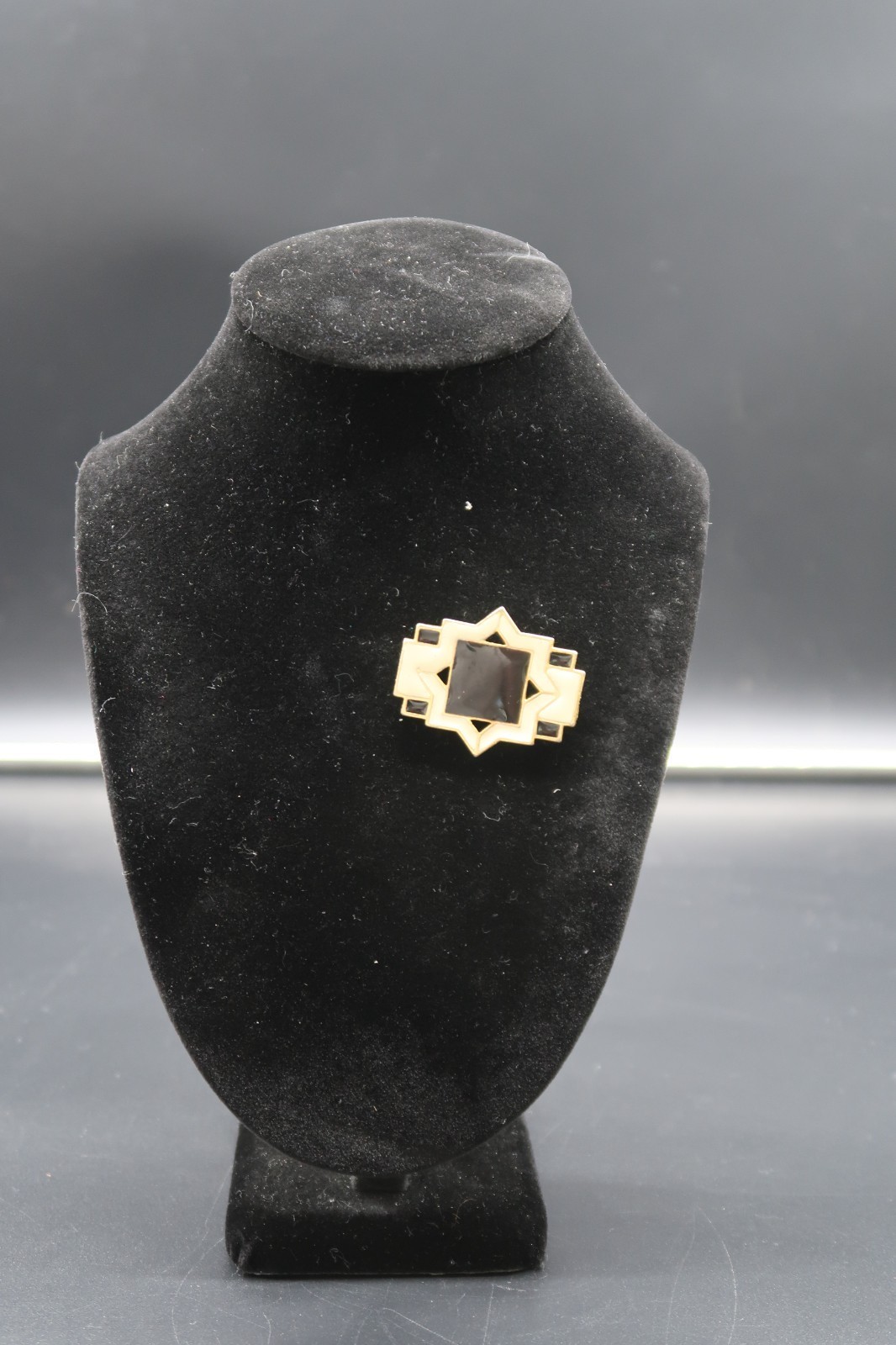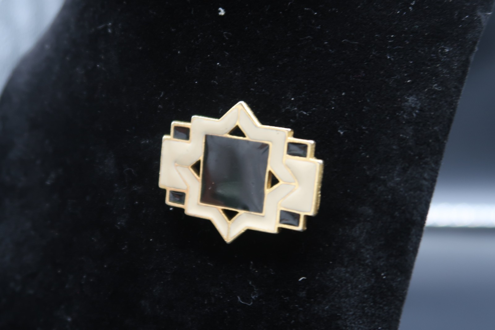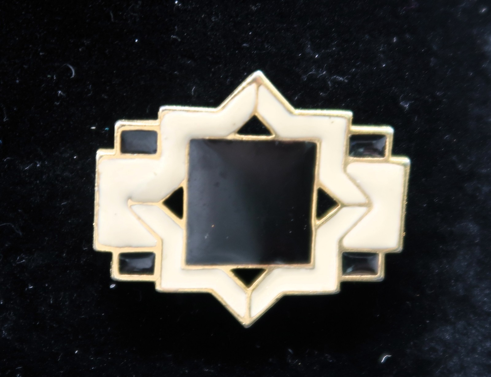 Vtg Art Deco Enameled Brooch Black & White Geometric Gold Tone Unsigned Fashion