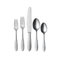 Combining the stylish good looks of a classic cutlery set with the more contemporary touch of matte stainless steel, this five piece set would grace any sophisticated dining table. Designed in 1941, Mitra uses its distinctive shape as its only decorative feature giving the knives, forks and spoons a timeless air.