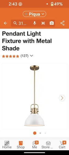 Shelston 10 in. 1-Light White and Brass Farmhouse Pendant Light Fixture with Metal Shade
