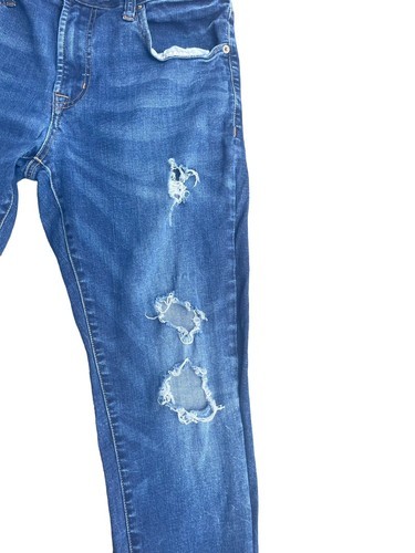 Upgrade your denim game with these trendy Men's American Eagle Distressed Skinny Jeans. These pre-owned jeans are perfect for any occasion, and their regular size type will fit most men comfortably. The blue color pairs well with most tops, and the 34 in inseam is perfect for those who prefer a longer length.