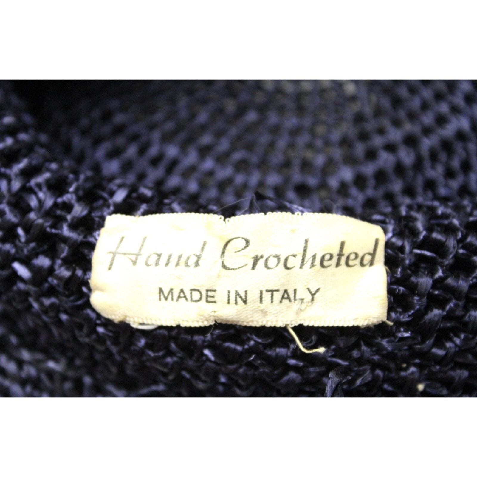 60s VTG Crocheted Cellophane Straw Hat Toque Pillbox Navy Blue Italy O/S Womens