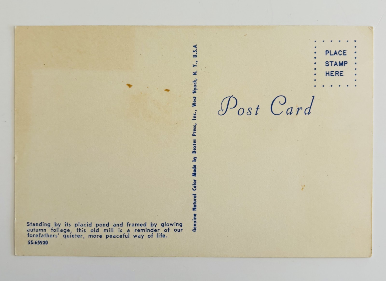 1980s Postcard Old Mill New York New England Fall Scene Unposted Vintage 2 CHXD