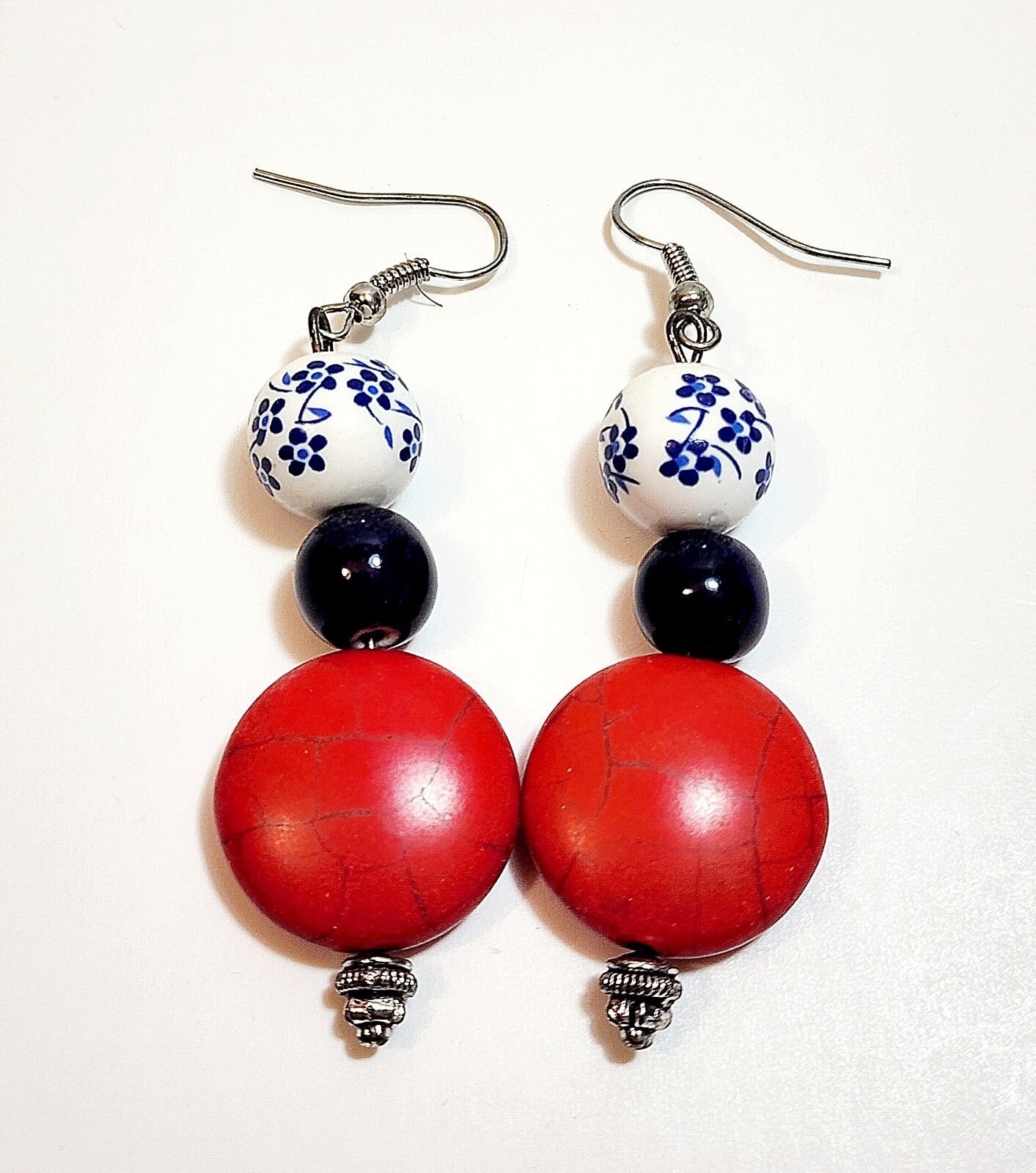 Vintage Earrings Costume Handmade 3 Tier Beaded B66 Maine