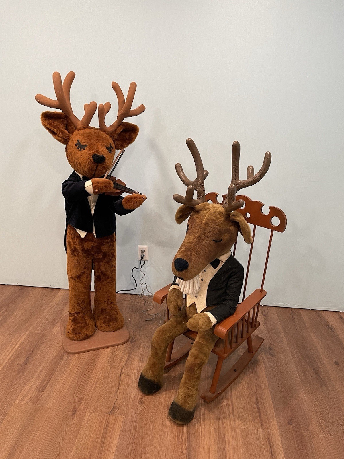 Set Of 2-60” & 48” Tall Animated Mechanical Van Deer Family Deer-David Hamberger