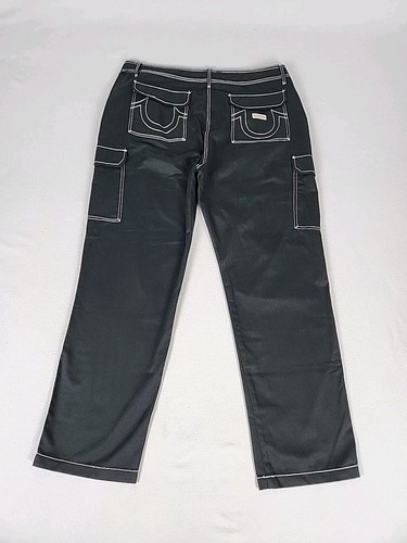 True Religion Regular Fit Straight Leg Snap Cargo Pants Men's 42X32 Black 108335