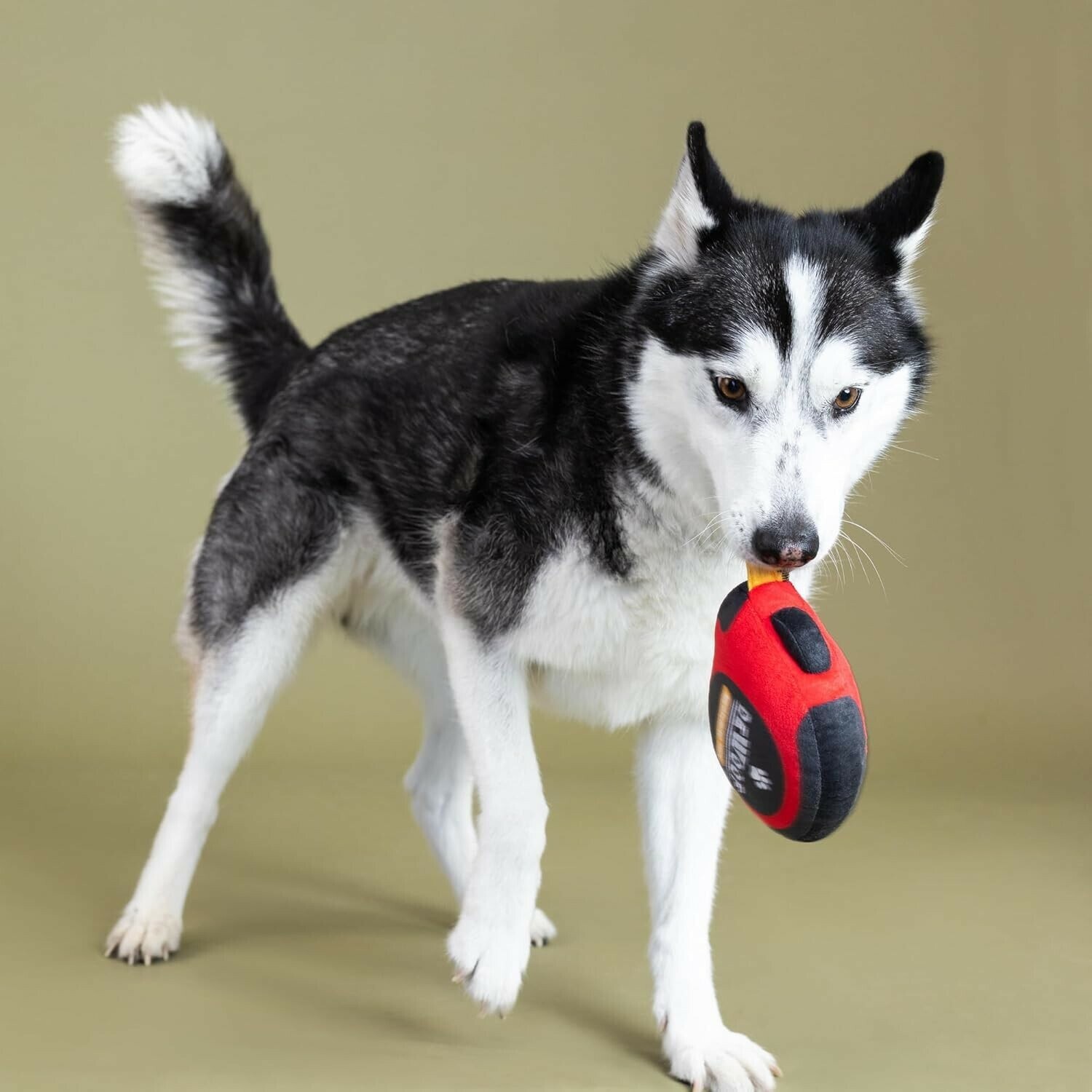 Welcome to Wagsdale Better Measure Up is for the pups that love to work hard and play harder. Made with a super loud squeaker and crazy crinkle paper, this toy was designed with interactive play in mind. Whether you squeak, crinkle, or toss it, this toy will take your pup's playtime to great lengths. Great for all-sized dogs and not intended for aggressive chewers.