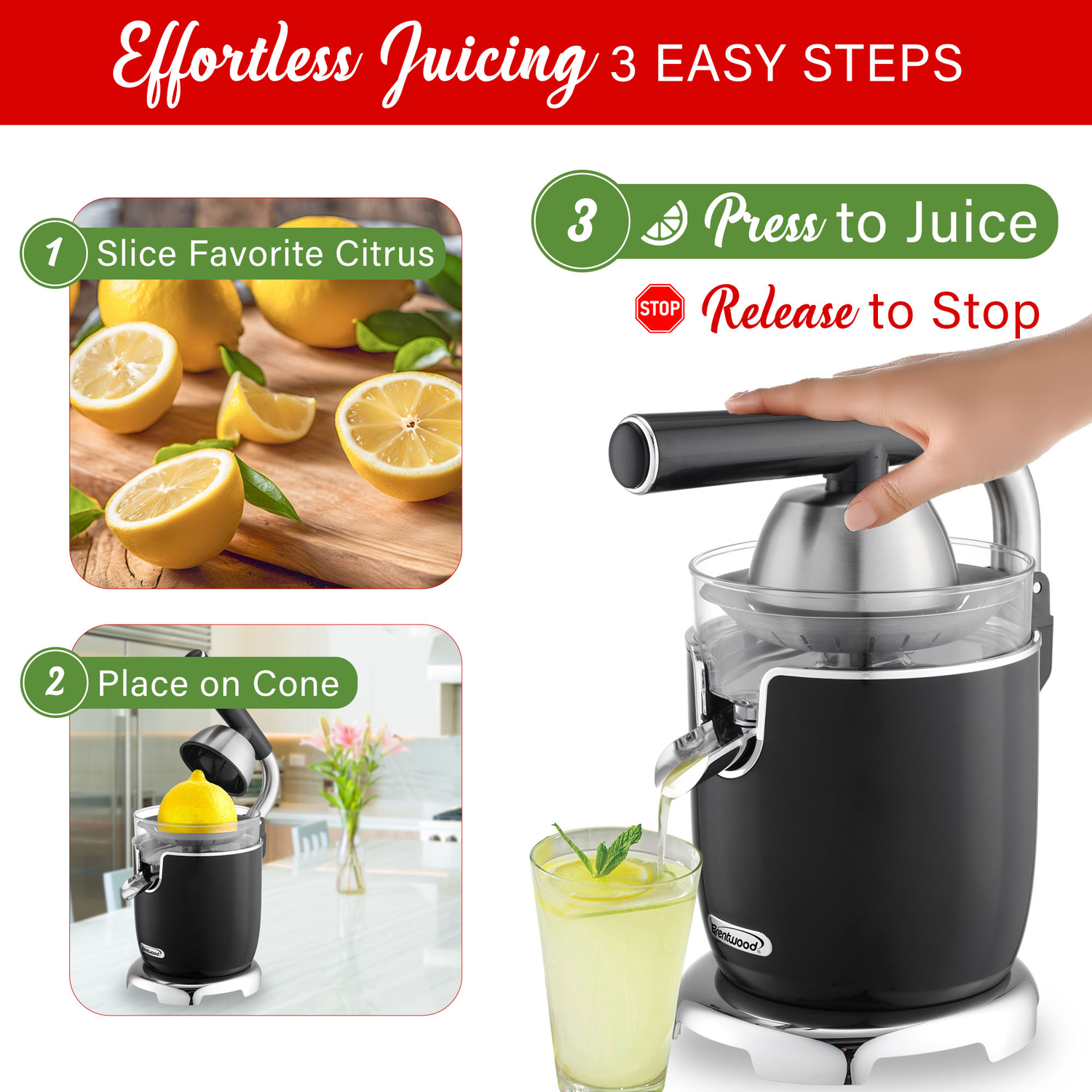Brentwood 200-Watt Electric Citrus Juicer with Stainless Steel Lever, Black, J-28BK