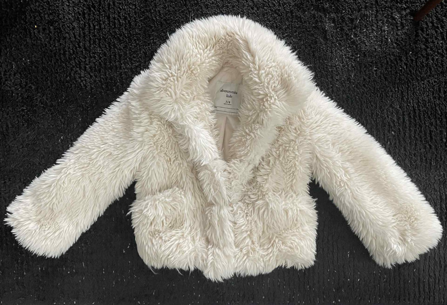 Used 2-3 times Abercrombie Kids Girls FAUX FUR IVORY COAT sz 7/8 fluffy jacket