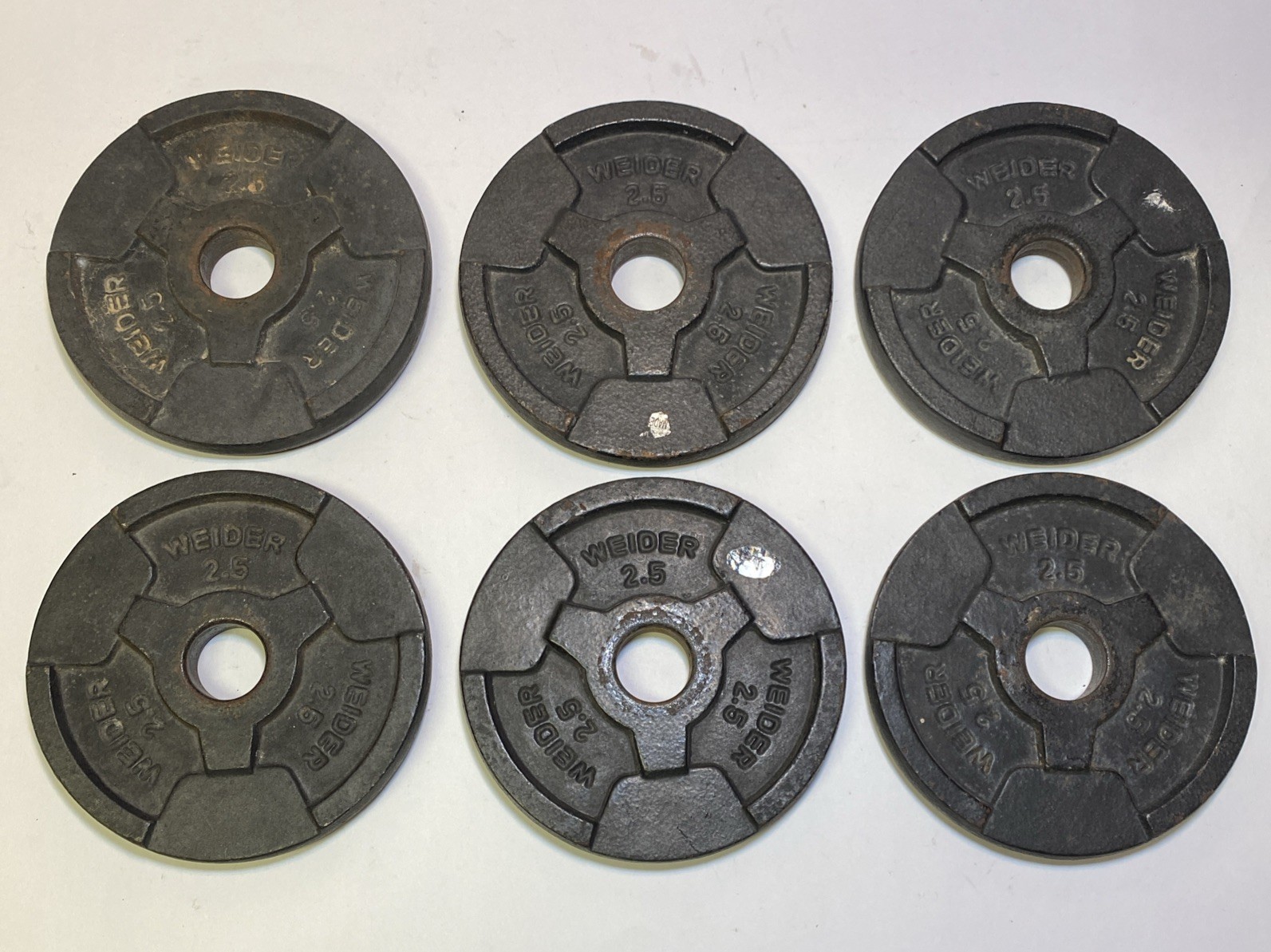 (6) Weider 2.5 lb Easy Grip Weight Plate Set Standard Hole 1" Weightlifting Vtg