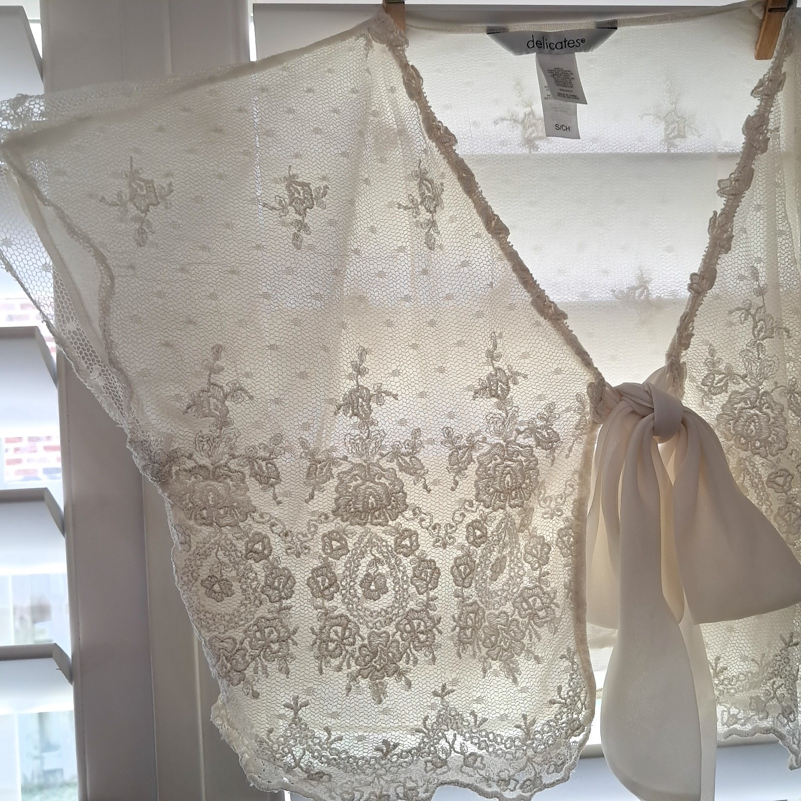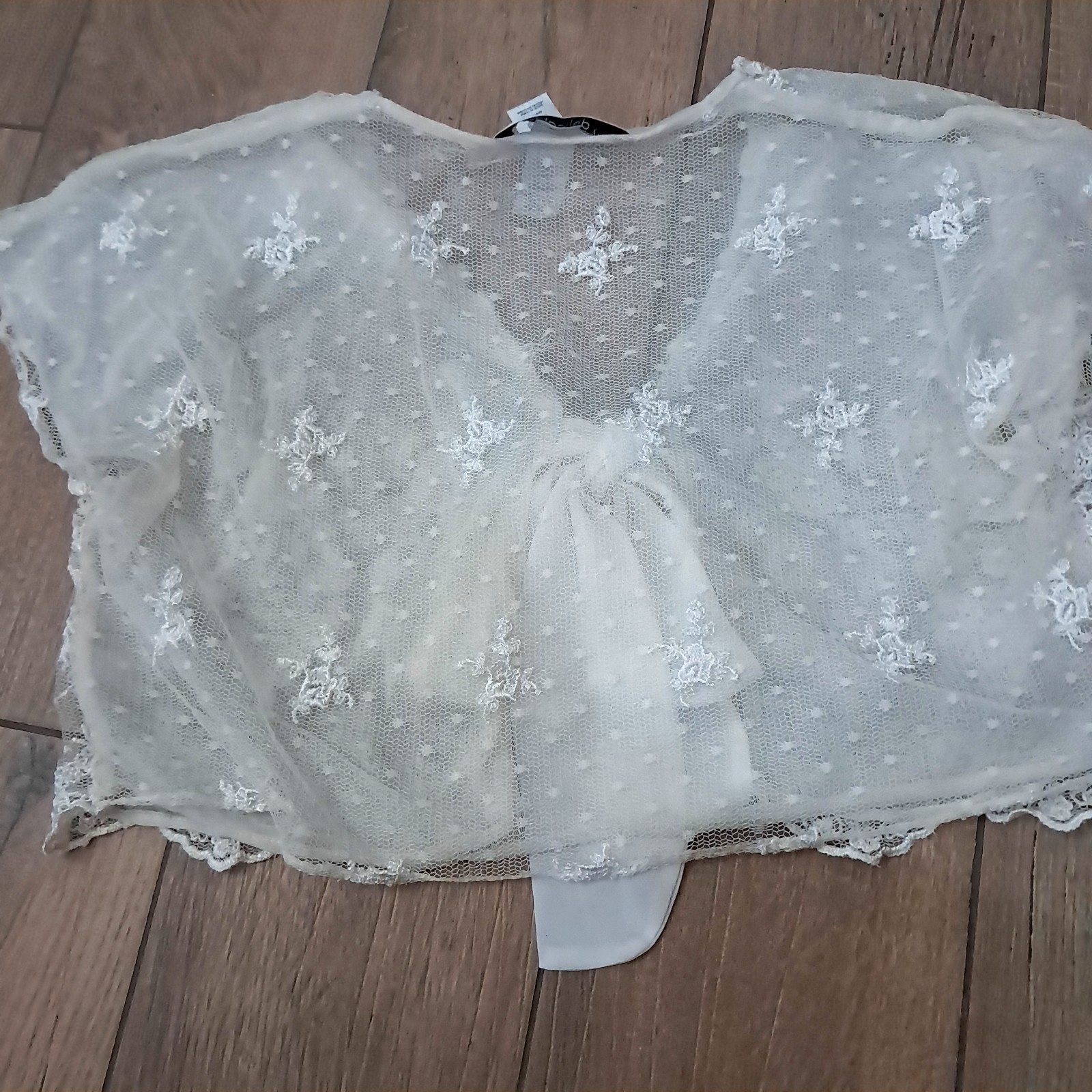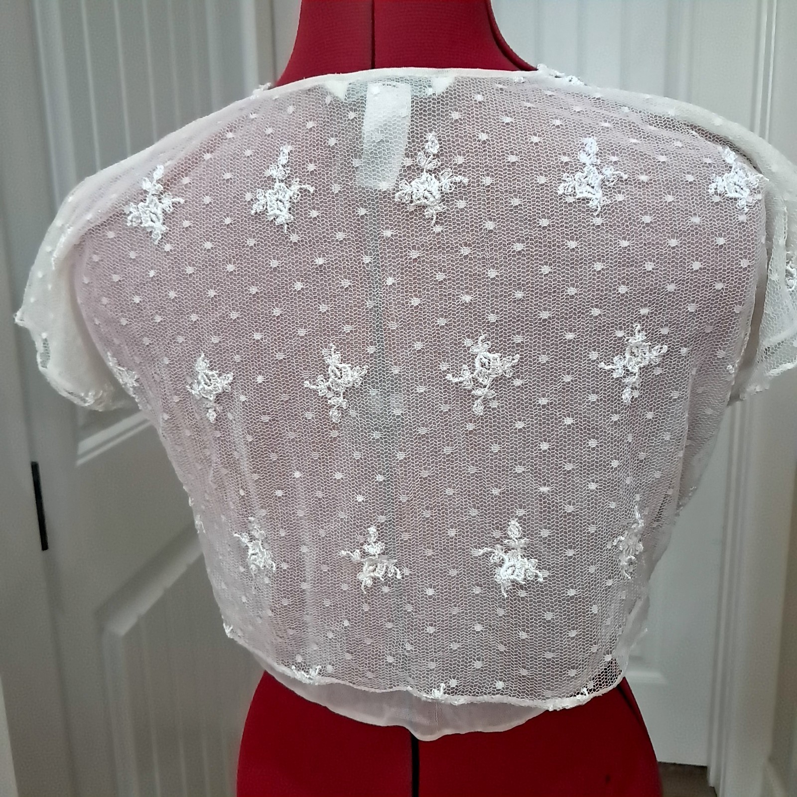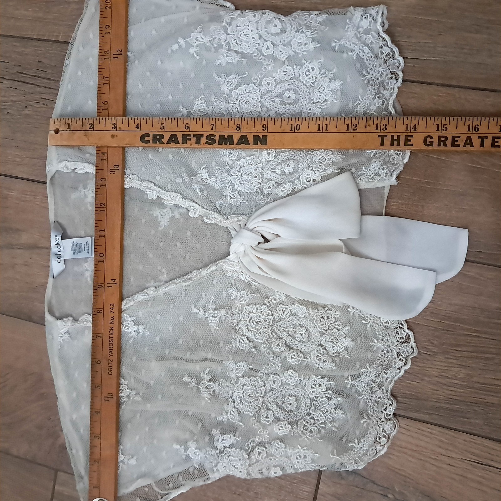 Delicates sz S Small lace cream off white shrug jacket tie sheer lingerie bridal