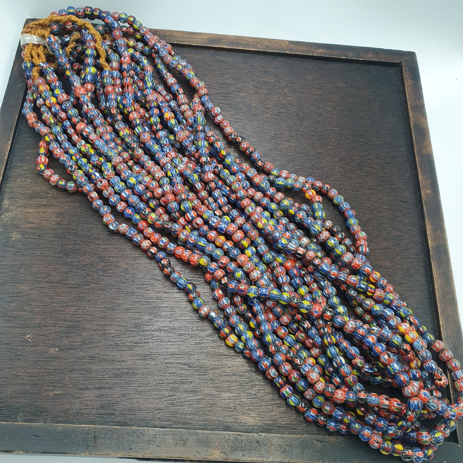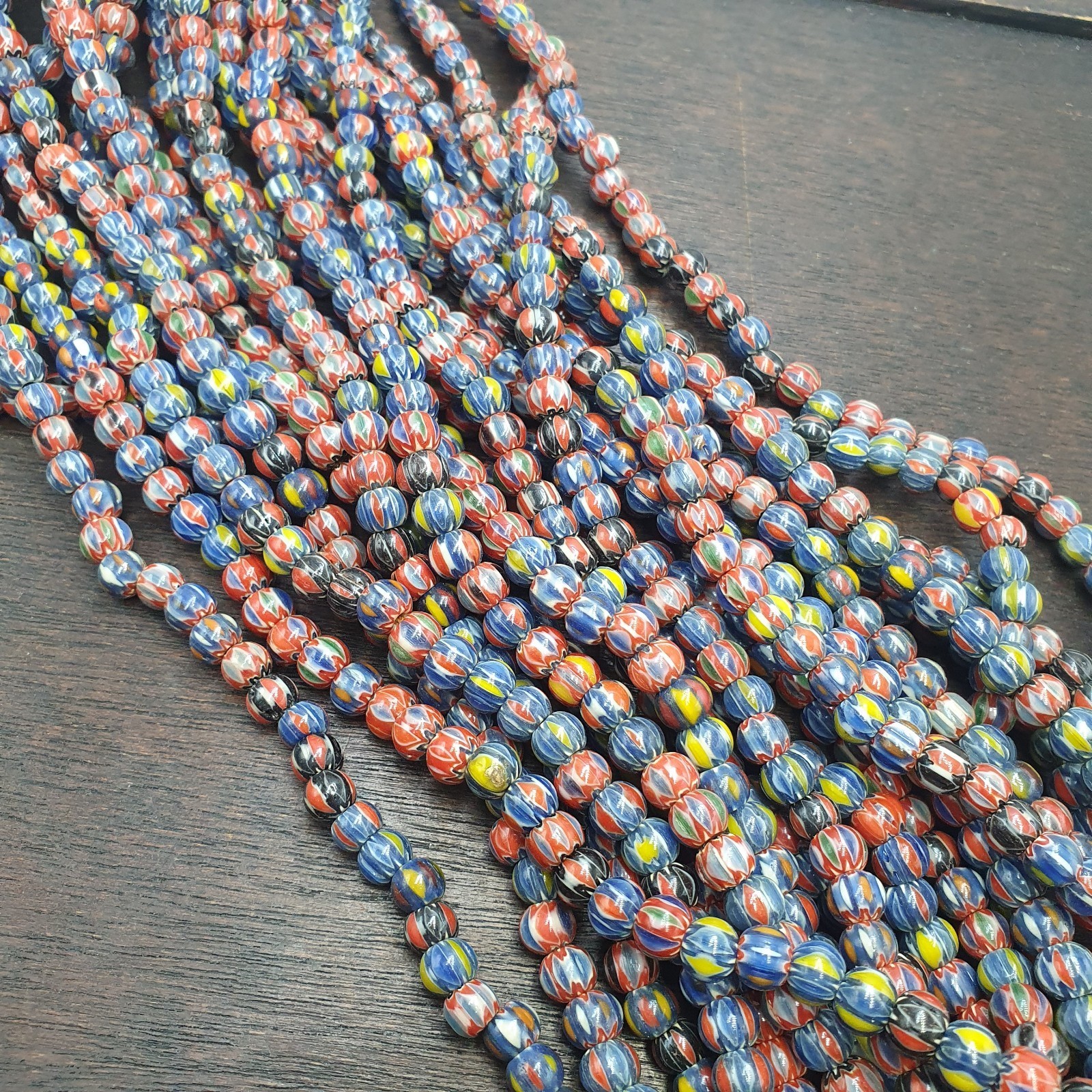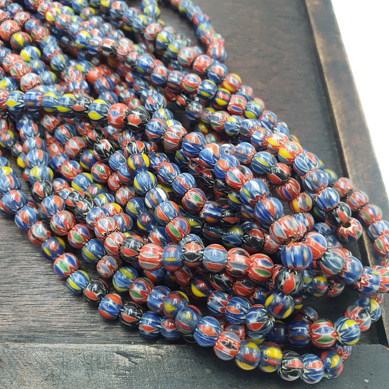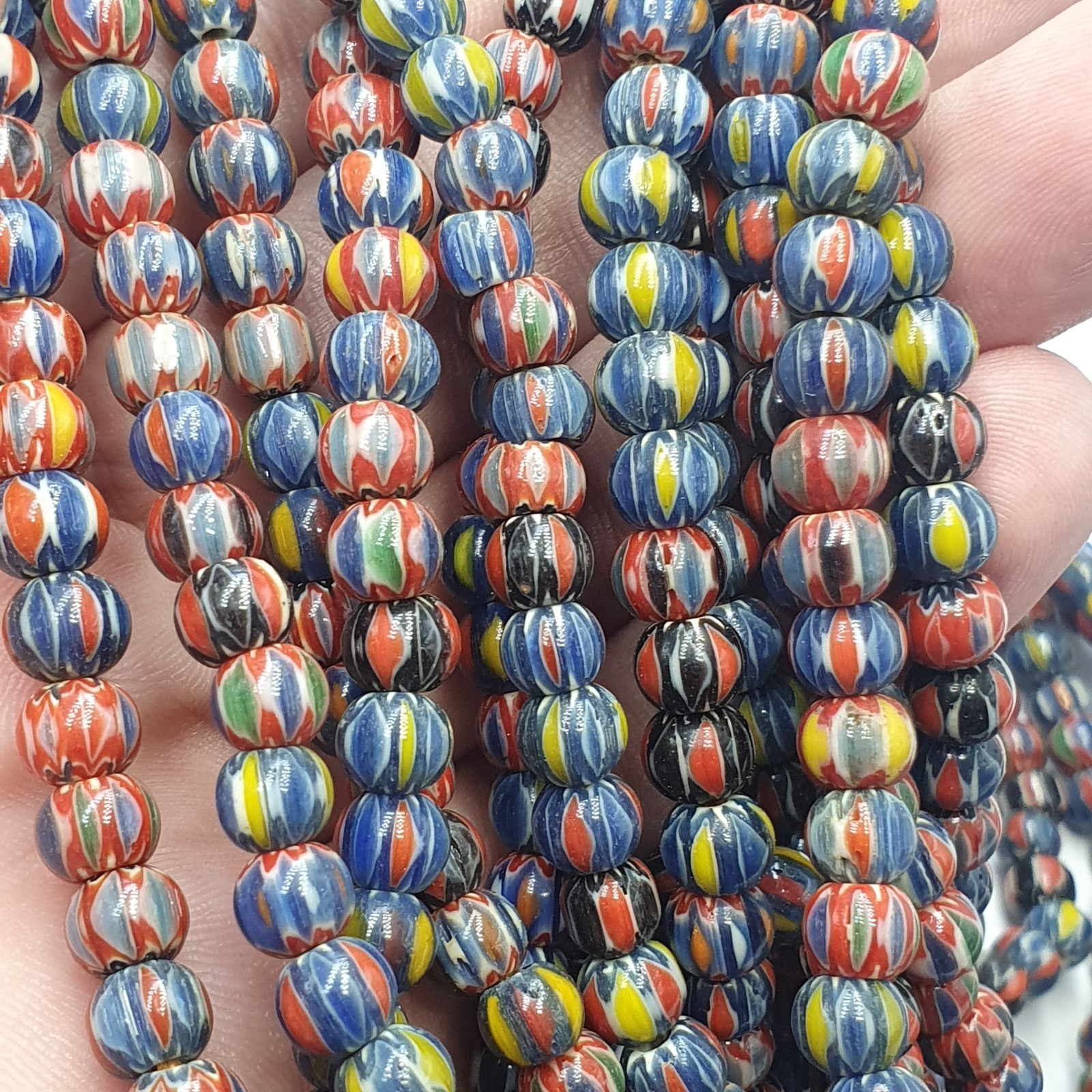 Vintage Venetian African Style Glass Chevron 6.5-6mm Beads Long Strand