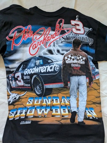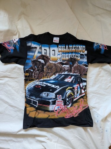 Il prodotto e una camicia NASCAR Dale Earnhardt vintage del 1997 in taglia M, con cavalli in carica dappertutto. E una camicia per adulti unisex nera con l'inseguimento del marchio, ufficialmente autorizzata per l'evento Burger King. La maglietta rappresenta il team "The Intimidatore" e mette in mostra Dale Earnhardt, un famoso pilota NASCAR noto come "The Intimidatore". La maglietta e stata realizzata negli Stati Uniti ed e legata alle corse automobilistiche.