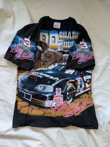 Vintage 1997 Nascar Dale Earnhardt Ricarica Cavalli Stampa Ovunque Camicia M