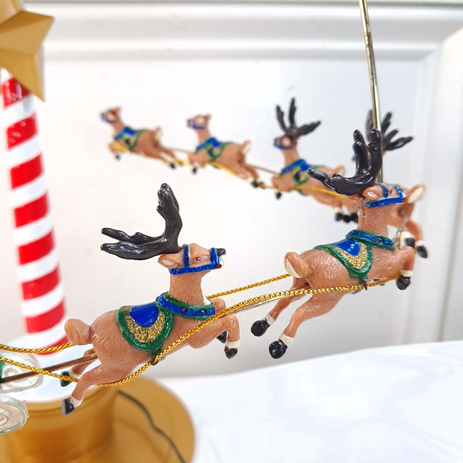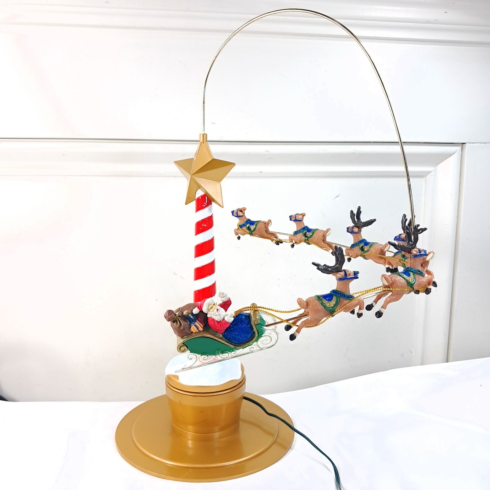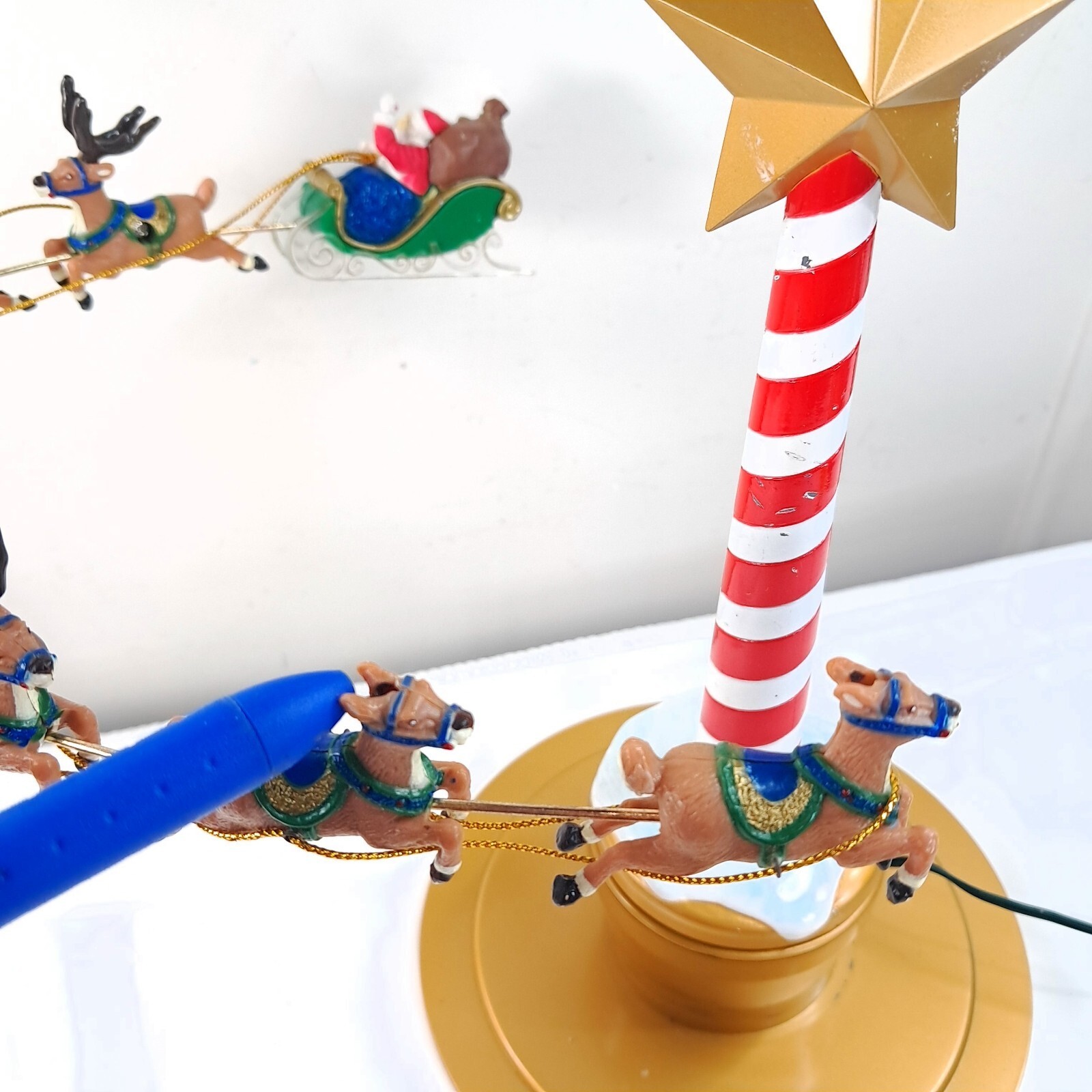 Mr. Christmas Floating Tree Top Santa Reindeer Sleigh Rotating Motion Topper