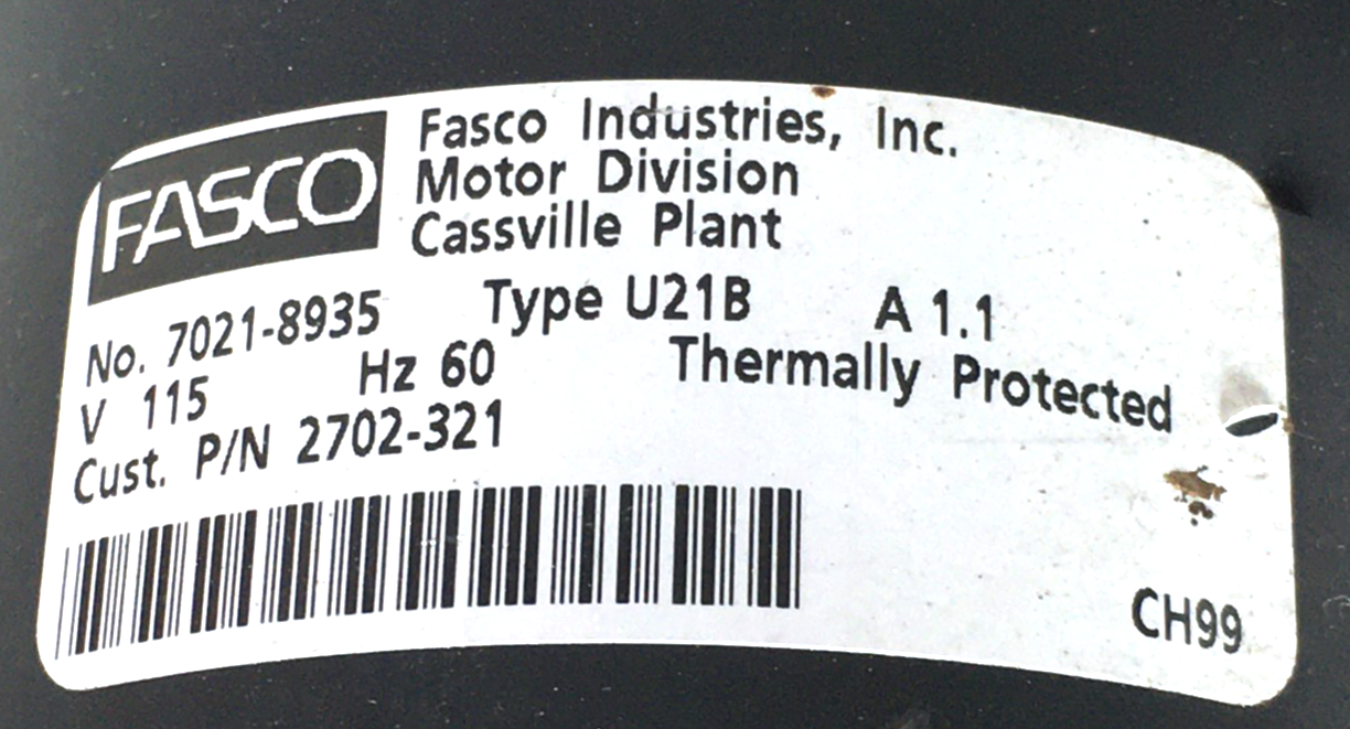 This is FASCO 7021-8935 Draft Inducer Blower Motor Assembly 2702-321 115V 60Hz used part.