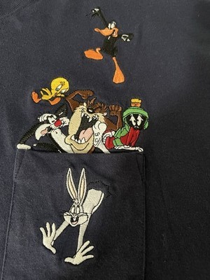 Vintage Taz Embroidered Pocket Shirt Mens XL Looney tunes Tee Cartoon 90s Daffy