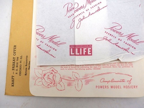 These John Powers Model nylon stockings are seamless and are all new and in the package, never worn. They appear to be a Kraft- Parkay Margarine giveaway- still, in the mailing envelope, I guess from the 1960s. They haven?t been opened and I don?t want to open it to measure. There's no size marked on the stockings.