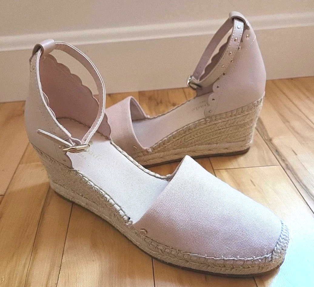 Kate Spade Polly Pink Suede Espadrilles Wedge Sandals Ankle Strap Women Sz 9 New