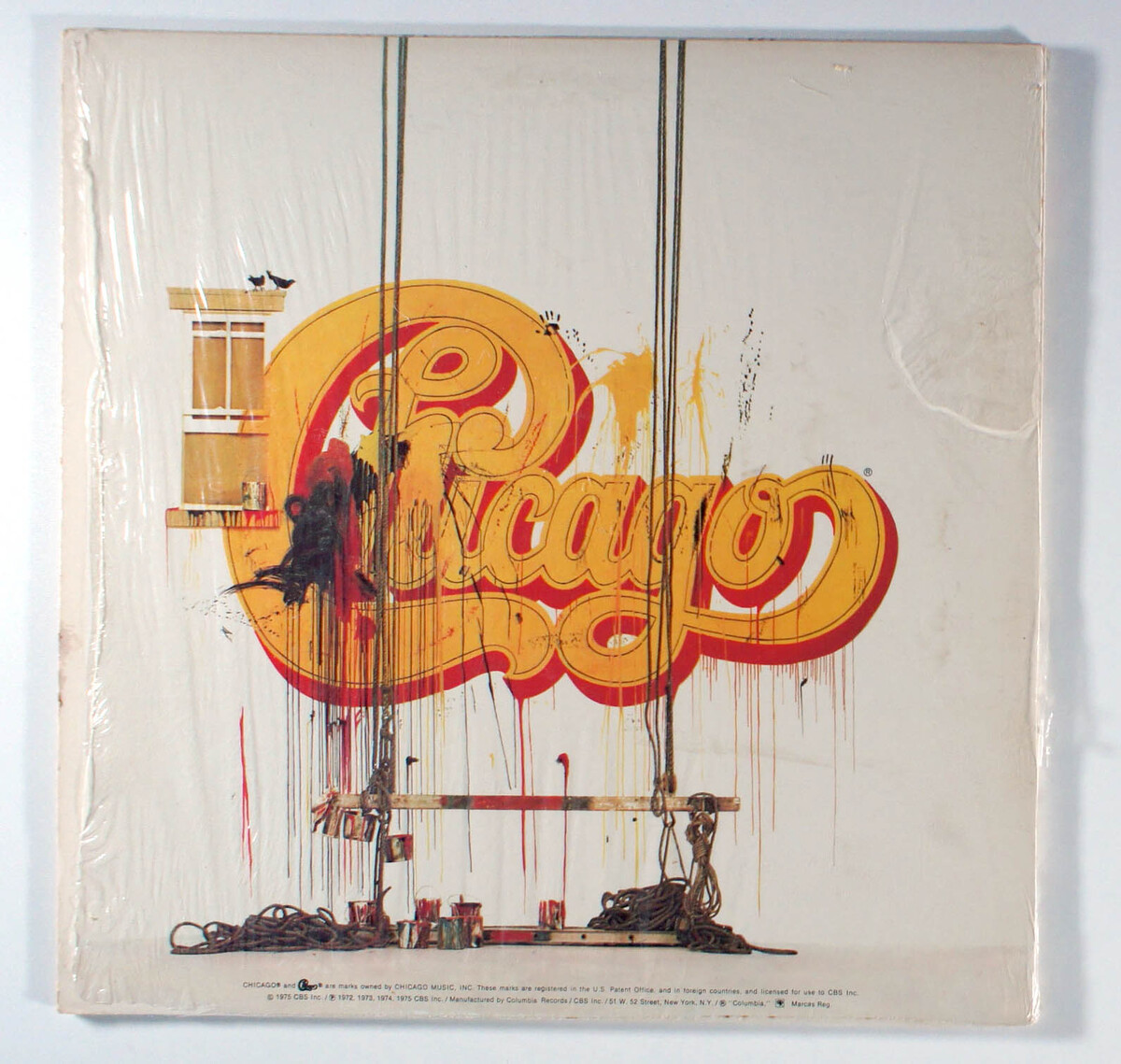Still in ORIGINAL SHRINK-WRAP (opened). Vinyl plays with some crackles and a few light-clicks (play-graded). Cover has a few creases near edges, slight discoloration (front/back). Inner-sleeve is poly-lined black paper. Spine is easy-to-read with mild-wear. Minor shelf-wear along top/bottom-edge; some wear to corners. Opening is crisp with signs of light use and divots. Custom Chicago label. (Not a cut-out.)