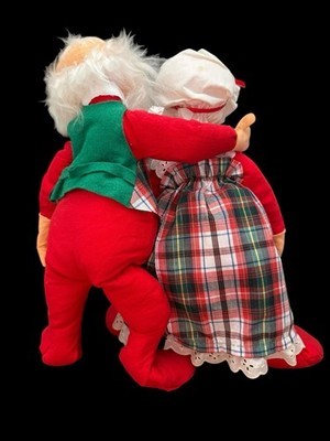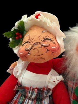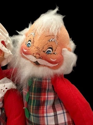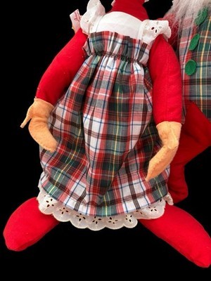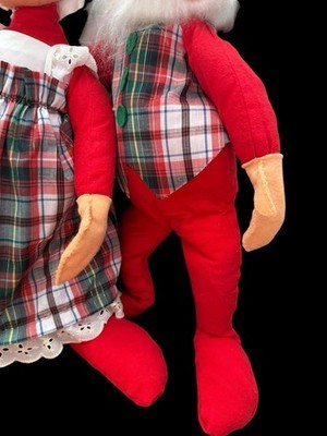 VTG 1969 Annalee Mobilitee Doll Set Christmas Santa & Mrs. Claus 18” Tall Plaid