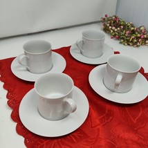 4 Sets Dansk TAPESTRIES WINTER WHITE Cups & Saucers jack lenor larsen swirl