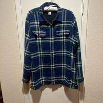 LL Bean Mens XL Fleece Lined Flannel Shirt Jacket Shacket Blue Green White Plaid