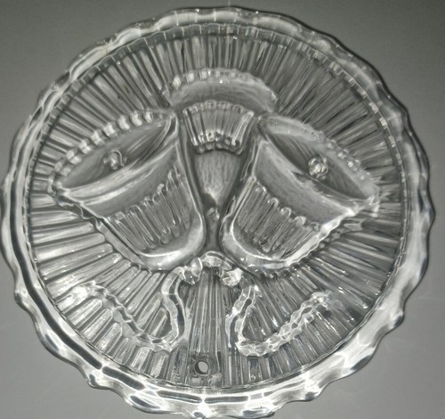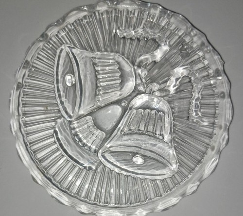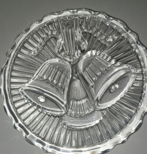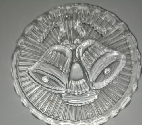 HOLIDAY BELLS Christmas Ornament Clear Glass Round Flat 3 1/4" Dia. Vintage