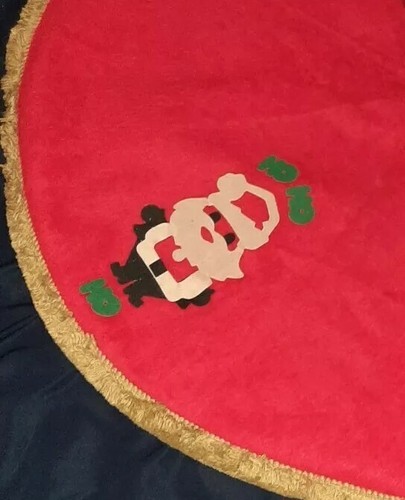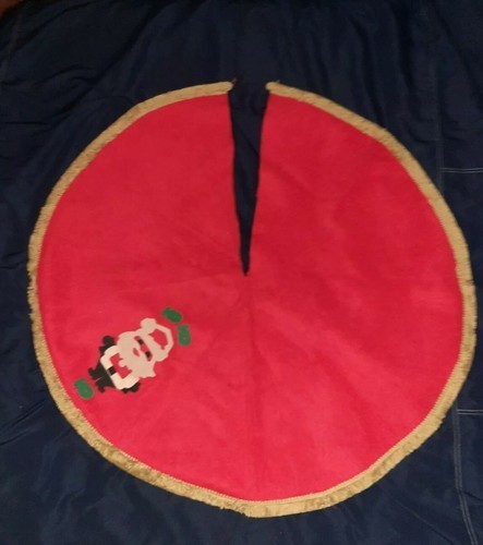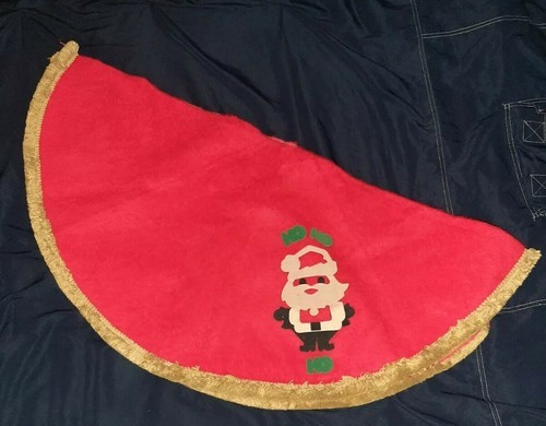 1950s Vintage Felt Red Christmas Tree Skirt - 35'' Santa Claus Hohoho decor