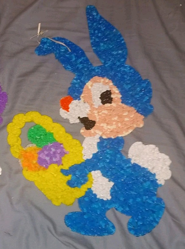 Melted Plastic Popcorn BLUE Easter Bunny Rabbit Decoration USA Vintage