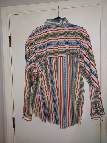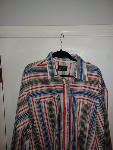 Vintage Panhandle Slim Western Shirt Men's XL Red Blue Stripped Button Up Cowboy