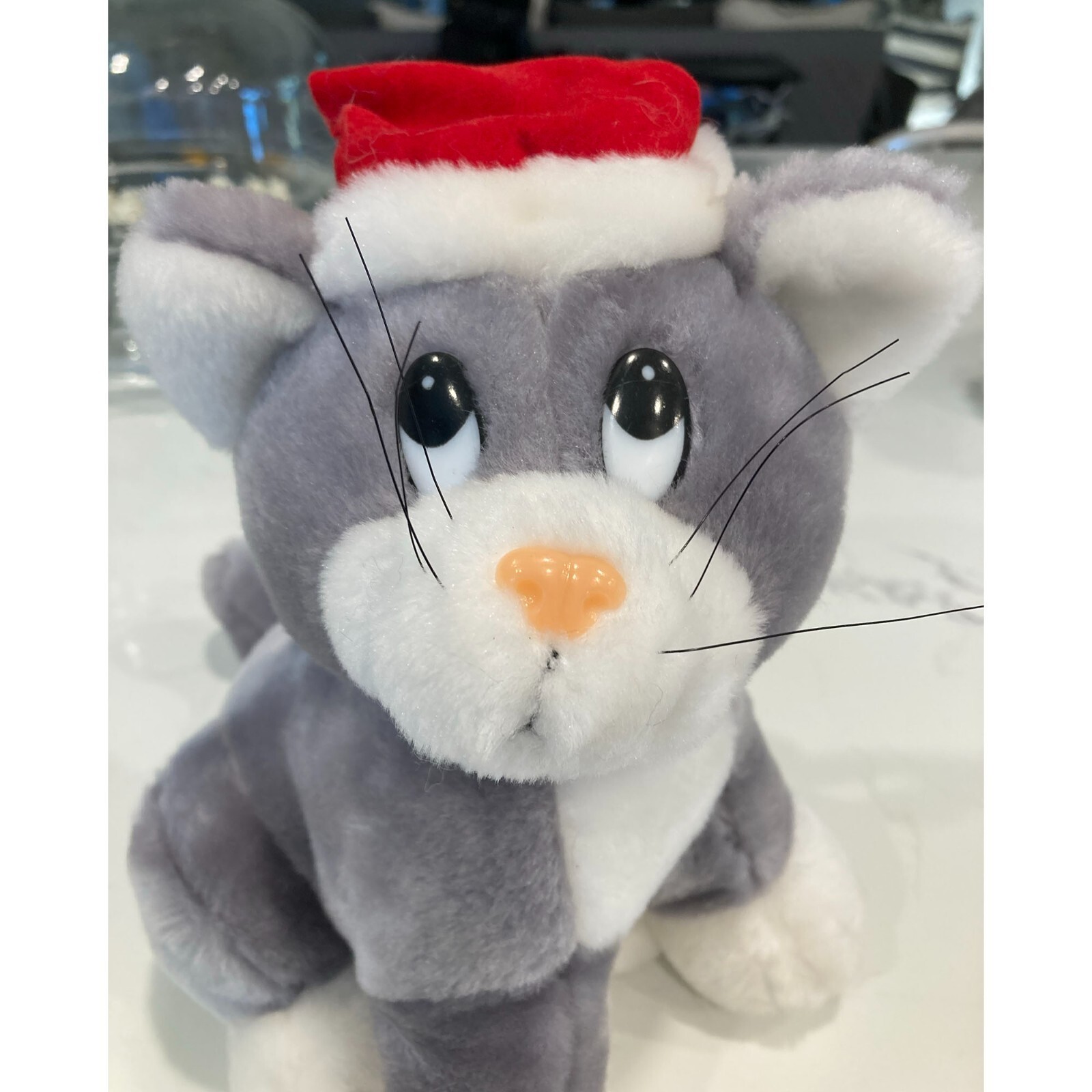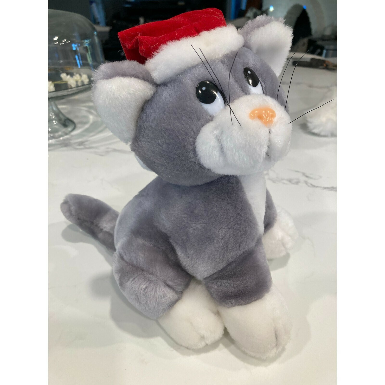 Gray Cat Plush Stuffed Animal with Santa Hat Christmas Holiday Gift Toy New