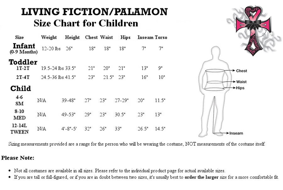 TODDLER COSTUME SIZE CHART IN PICTURES