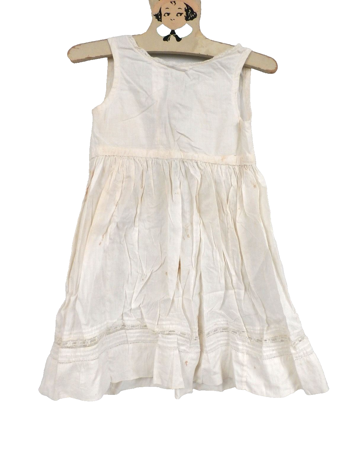 Antique Victorian Childs Slip Cotton Lace Pin Tucks Doll Dress 20" White