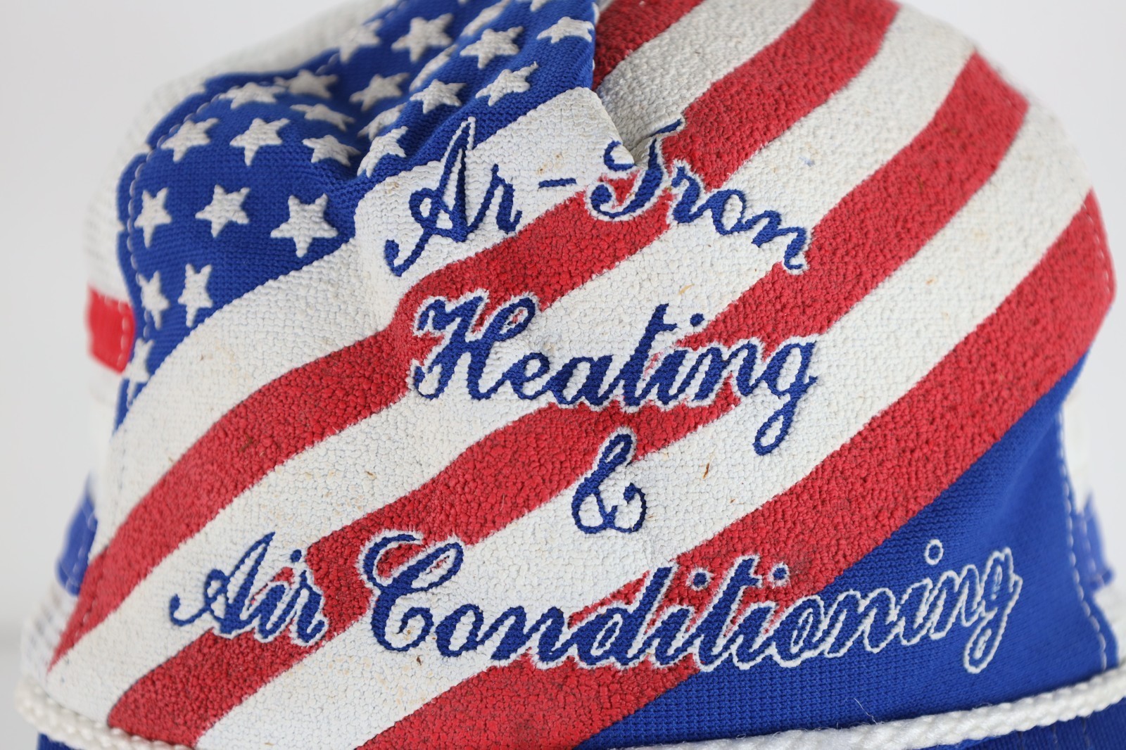 Vintage 70s 80s Distressed 3 Stripes Heating AC Flag Trucker Snapback Hat USA