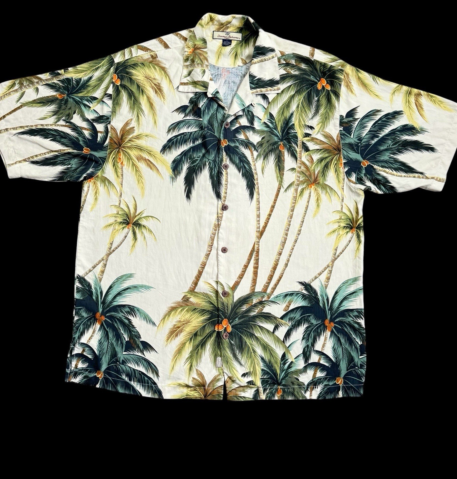 Tommy Bahama Shirt Mens Large Silk Button Up Hawaiian Palm Trees Tropical Relax