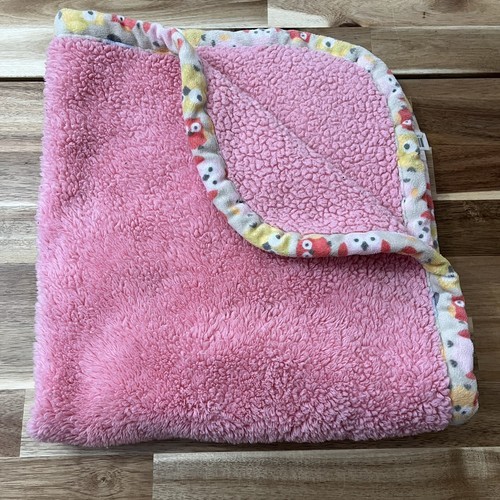 Blankets & Beyond Pink Baby Blanket With Owl Pattern Border 28x29