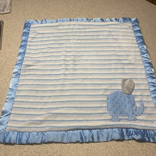 A.D. Sutton & Sons Blue Stripes Elephant Baby Blanket I LOVE YOU Satin Trim