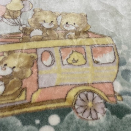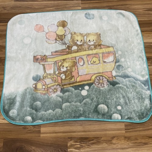 Vintage Biederlack? Fleece Throw Baby Blanket Bears Riding Bus Holding Balloons